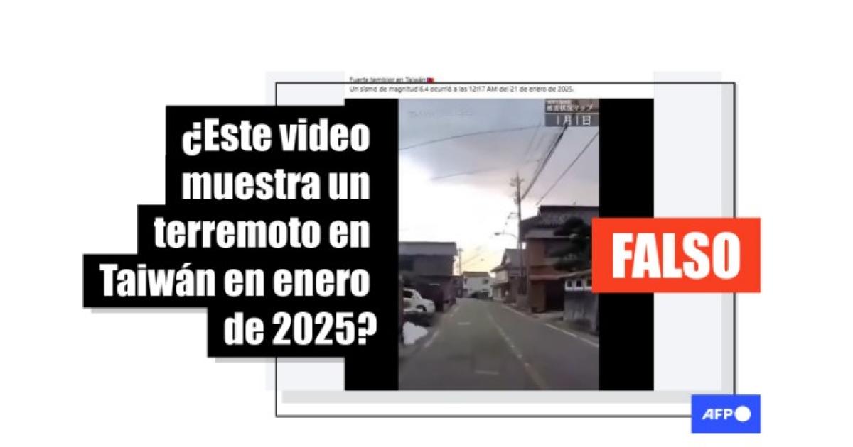 “Fuerte temblor en Taiwán Un sismo de magnitud 6.4 ocurrió a las 12:17 AM del 21 de enero de 2025”, se lee en publicaciones en Facebook (1, 2) junto al video viral. La secuencia también circula en inglés.