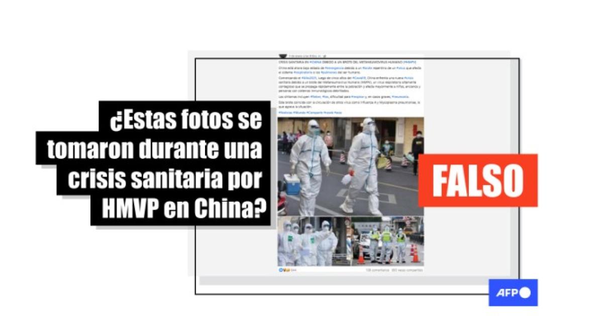 “CRISIS SANITARIA EN #CHINA DEBIDO A UN BROTE DEL METANUEMOVIRUS [metapneumovirus] HUMANO (HMPV)”, señalan publicaciones en Facebook acompañadas de tres fotografías con personal de salud (1, 2).