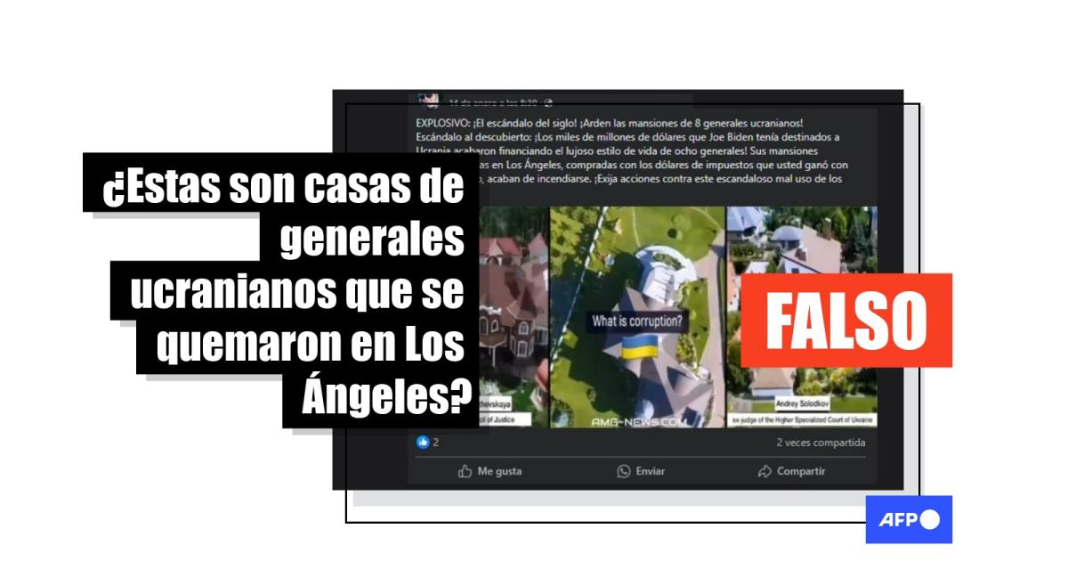 Una búsqueda con las palabras clave “mansiones”, “generales ucranianos” y “Los Ángeles” en español, inglés y ucraniano no condujo a ningún artículo periodístico relevante que informara sobre el acontecimiento.