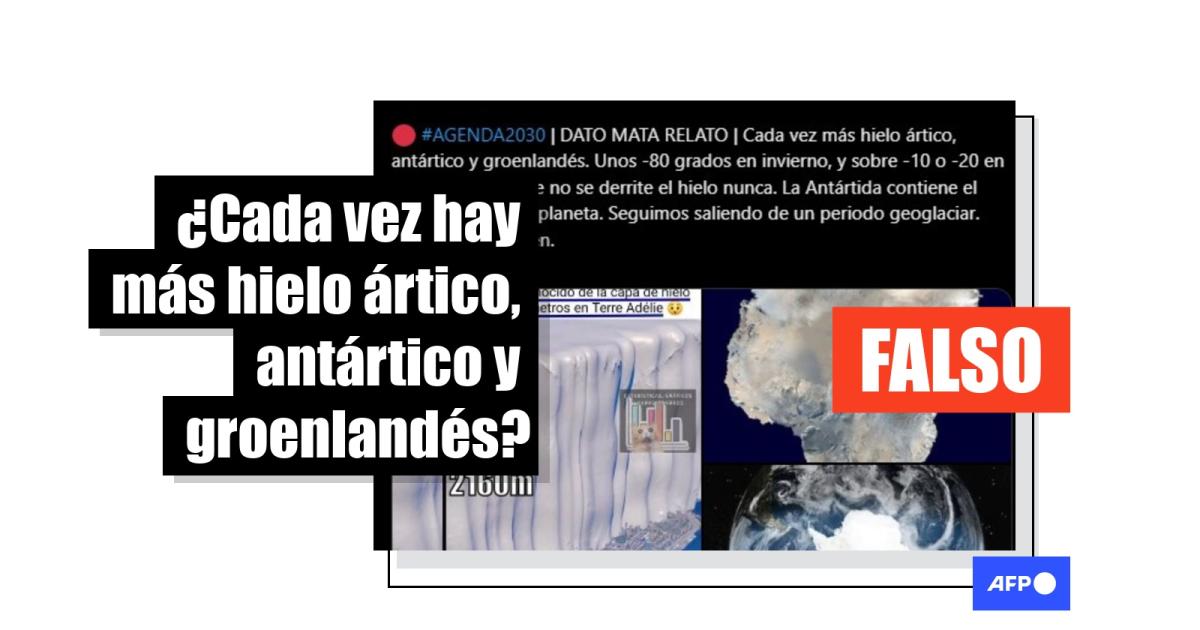 Las entradas virales aseguran que hay “cada vez más hielo ártico, antártico y groenlandés”. Sin embargo, la NASA registró una disminución del 12,2% de la extensión de hielo en el Ártico por década desde 1979. El volumen promedio de hielo ártico en 2024, un indicador que tiene en cuenta el espesor del hielo, fue de 13.600 kilómetros cúbicos, el quinto más bajo registrado desde 1979, según datos del Polar Science Center de la Universidad de Washington.