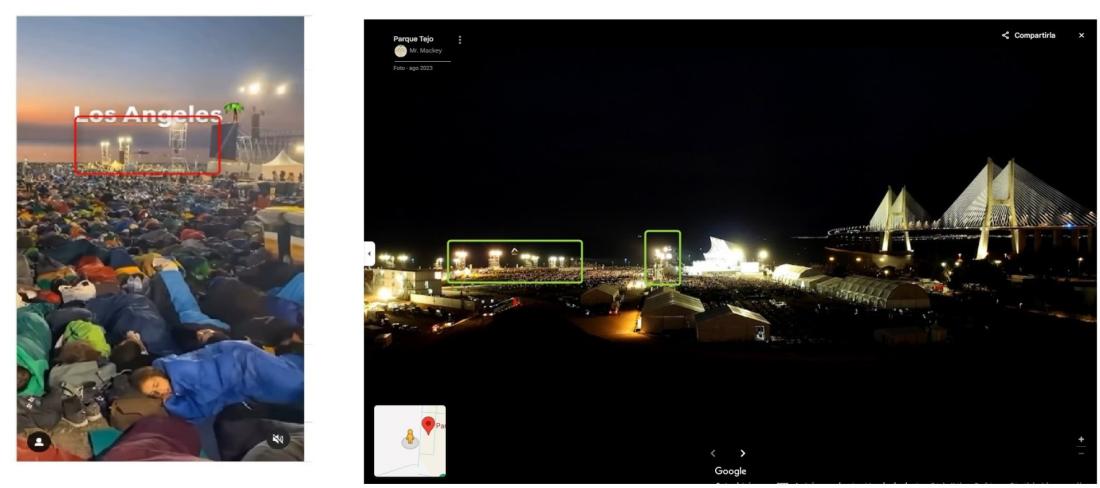 Una foto nocturna del parque subida a Google Maps en agosto de 2023 muestra elementos similares a los vistos en el vídeo, como las torres con luces señaladas en las siguientes imágenes:
