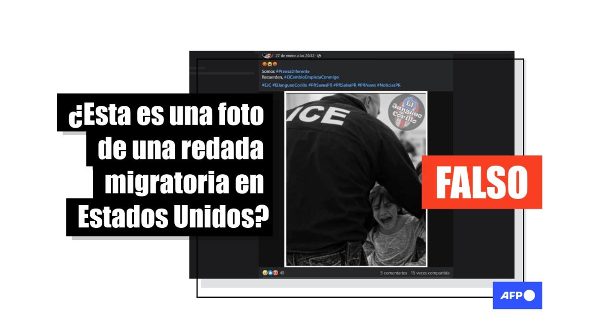 “Y así siguen mandando sus hijos a la escuela ???? Esta imagen debería aparecer en diez mil vallas publicitarias en todo el país. ¡Tú votaste por esto! Piénsalo: ¡podría ser tu hijo, tu hermano, tu primo o un miembro de tu familia!”, escribe un usuario en Facebook. La publicación muestra una imagen en la que se ve a una niña llorando, mientras es tomada del brazo por un hombre que viste un abrigo en el que se lee “ICE”, sigla del Servicio de Control de Inmigración y Aduana de Estados Unidos. El mismo mensaje fue replicado en Instagram.