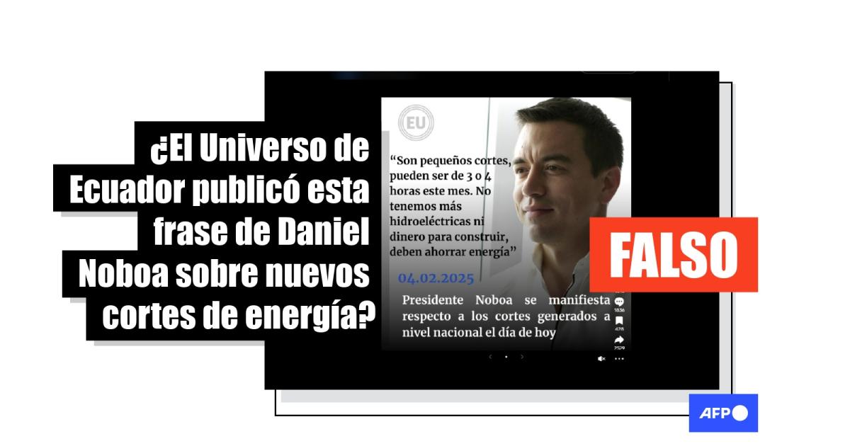 Frase de Daniel Noboa sobre cortes de energía en febrero de 2025 en Ecuador es apócrifa