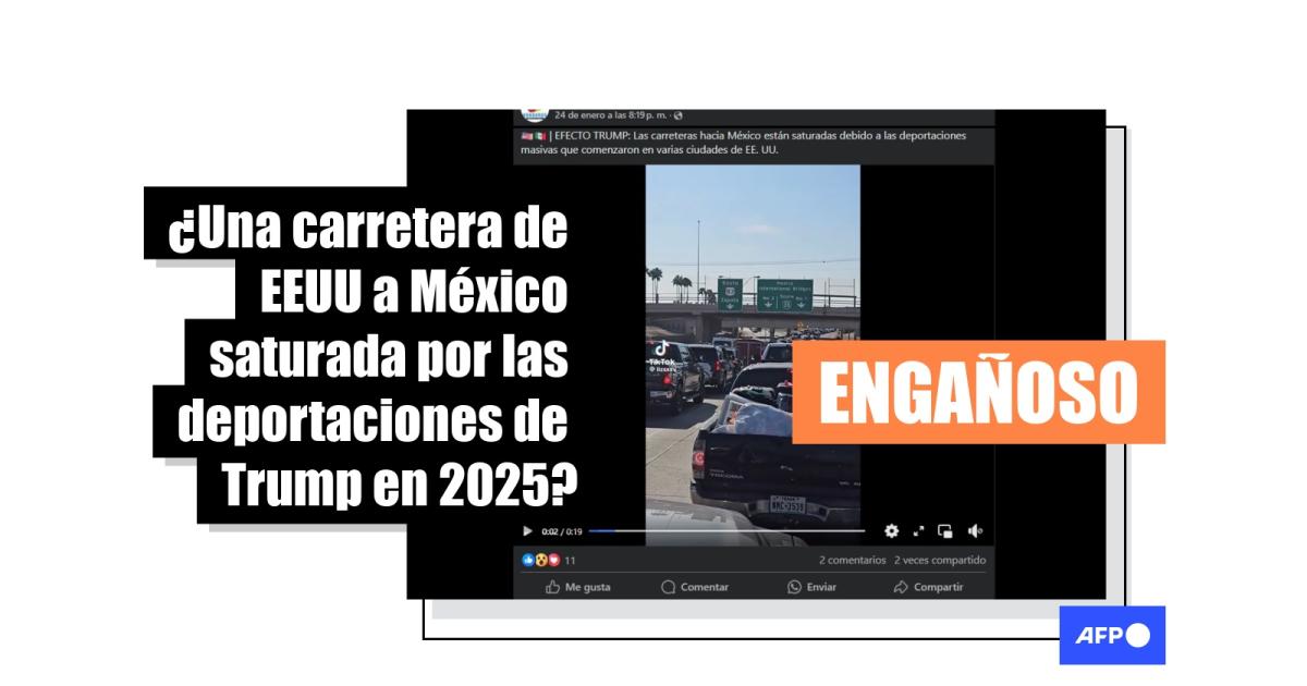“EFECTO TRUMP: Las carreteras hacia México están saturadas debido a las deportaciones masivas que comenzaron en varias ciudades de EE. UU.”, afirman publicaciones en Facebook, Threads, Instagram, TikTok y X, junto a un video que muestra filas de automóviles en una ruta con señalizaciones en inglés de salidas rumbo a South Zapata en Laredo, Texas, y los puentes internacionales a México.