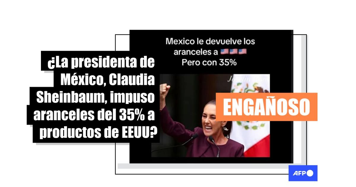 En un mensaje videograbado, Sheinbaum calificó la acusación como una calumnia y, aunque dijo que implementaría un “plan B” que incluiría “medidas arancelarias y no arancelarias en defensa de los intereses de México”, nunca mencionó imponer 35% de aranceles a importaciones de Estados Unidos como indican las publicaciones virales.