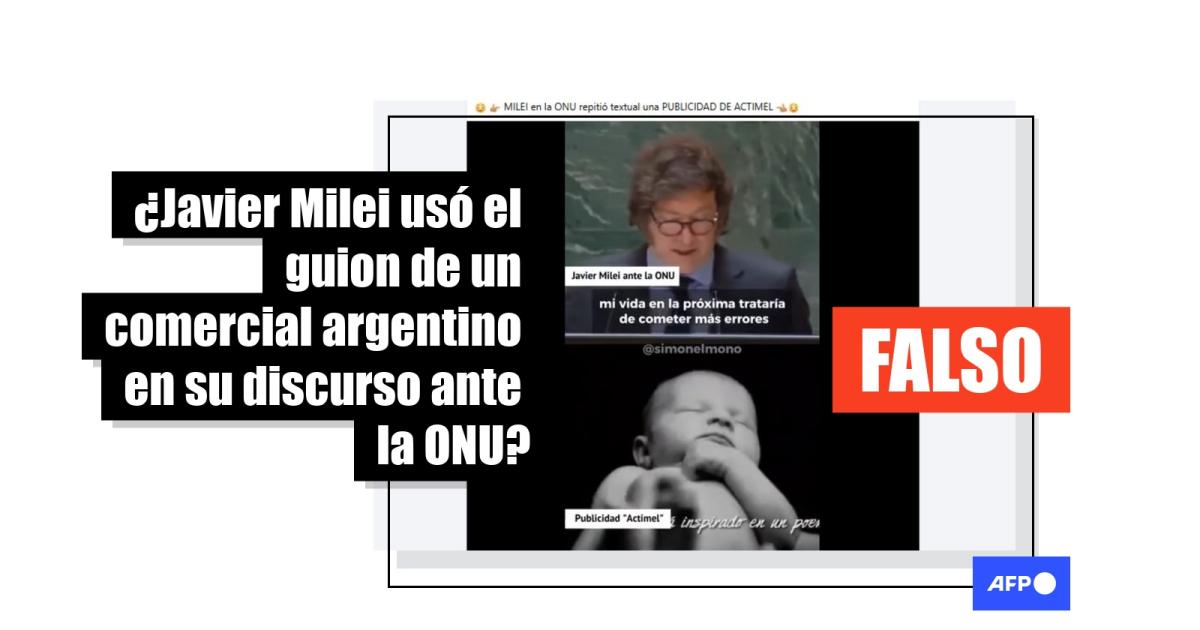Discurso de Milei ante la ONU fue manipulado para incluir frases de un comercial argentino
