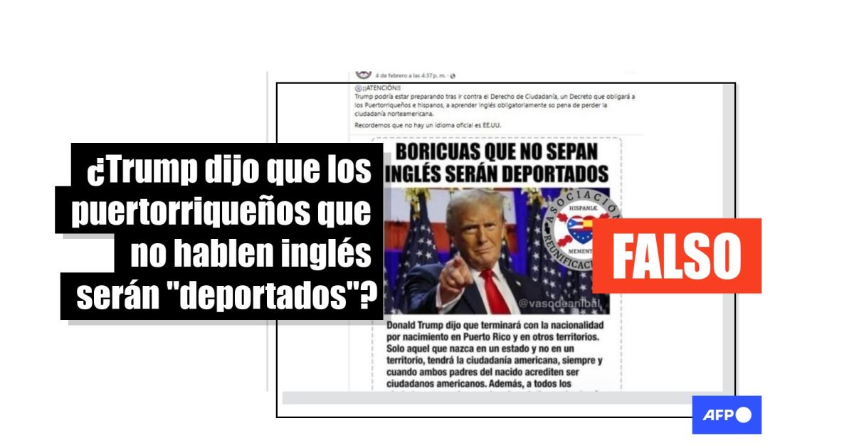 Las entradas virales también afirman que los puertorriqueños serán “deportados” si no hablan inglés y que ciudadanos estadounidenses “de origen latino” serán sometidos a un examen periódico de esa lengua.