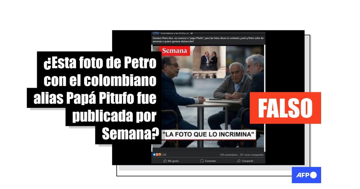 “‘La foto que lo incrimina’ Gustavo Petro dice no conocer a papá pitufo pero las fotos dicen lo contrario, será que Petro sufre de amnesia o quiere generar distracción”, se lee en una imagen compartida en Facebook (1, 2) y X (1, 2) con el logo de Semana.