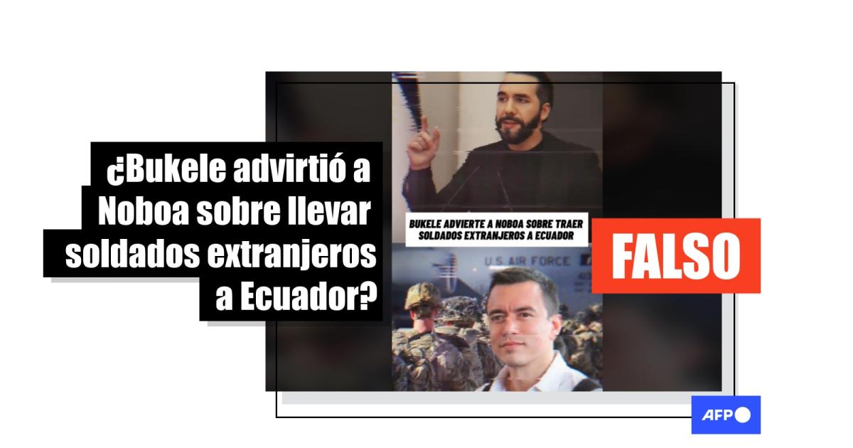 “Urgente. Bukele advierte sobre traer soldados extranjeros a Ecuador”, dice el audio y texto en un video compartido en Facebook (1, 2) y TikTok.