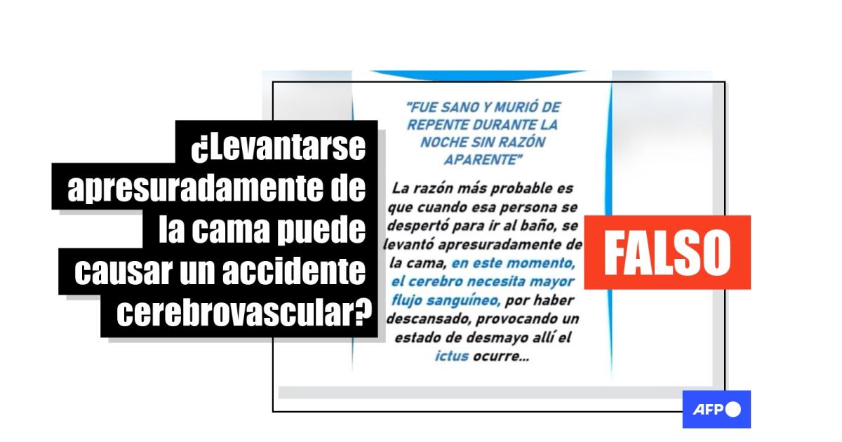 Sin embargo, a diferencia de lo que sostienen las publicaciones virales, incorporarse lentamente “no evita infartos cerebrales”, concluyó Custodio.