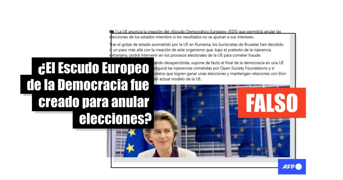 El Escudo Europeo de la Democracia es una comisión especial del Parlamento Europeo, creada a finales de diciembre de 2024, cuyo fin es velar por la integridad y justicia en los comicios de sus Estados miembros. En febrero de 2025 y a raíz de la elección de su presidenta, miles de usuarios en redes sociales comenzaron a difundir un mensaje que asegura que este mecanismo fue constituido para “anular elecciones si los resultados no se ajustan a sus intereses”. Expertos declararon a la AFP que el Escudo y la Unión Europea (UE) no pueden realizar esa acción, solo establecer estándares democráticos.
