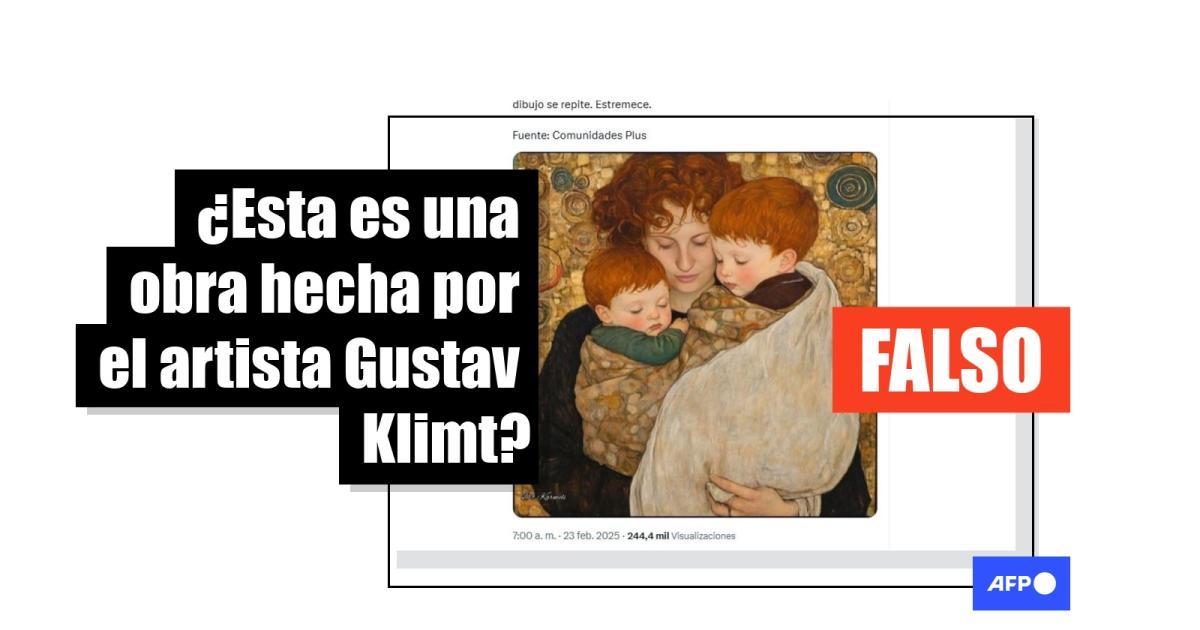 La imagen de una mujer abrazando a sus hijos fue hecha con IA, no es una pintura de Gustav Klimt
