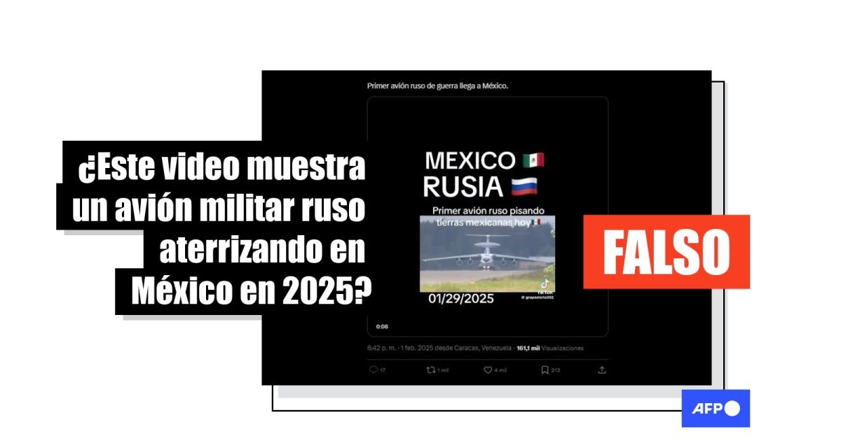 “Primer avión ruso de guerra llega a México”, afirman publicaciones en X, Facebook y TikTok. El video de 23 segundos de duración, que muestra un avión recorriendo una pista, indica una fecha: 29 de enero de 2025.