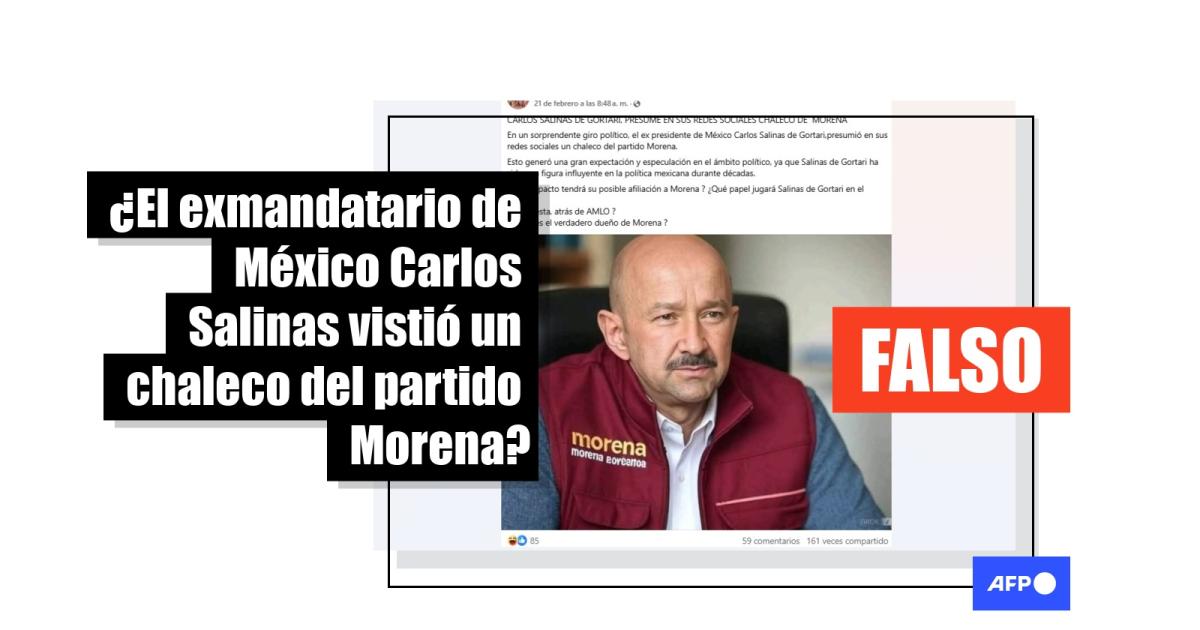 Foto del expresidente mexicano Carlos Salinas usando un chaleco de Morena fue creada con IA