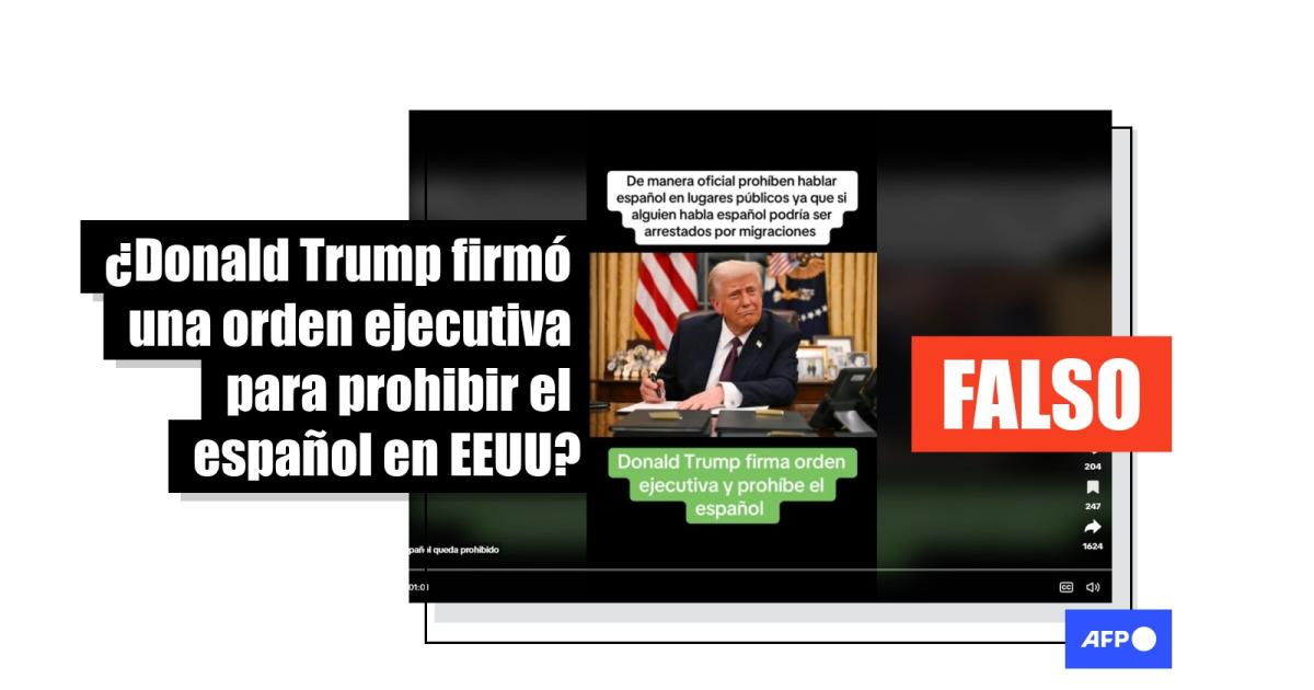 Otra secuencia en TikTok afirma que Trump firmó una orden ejecutiva para que el inglés sea el idioma oficial, por lo que “de manera oficial prohíben hablar español”.