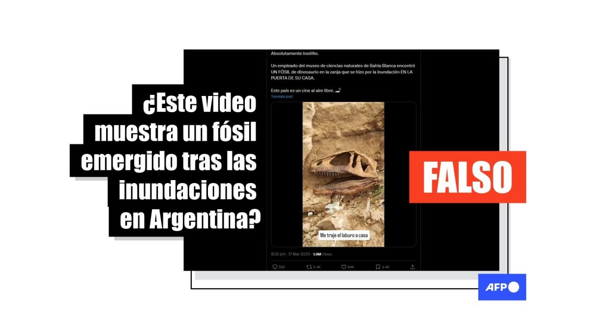Sin embargo, es falso que un fósil emergió de la tierra después de la tormenta en Bahía Blanca.