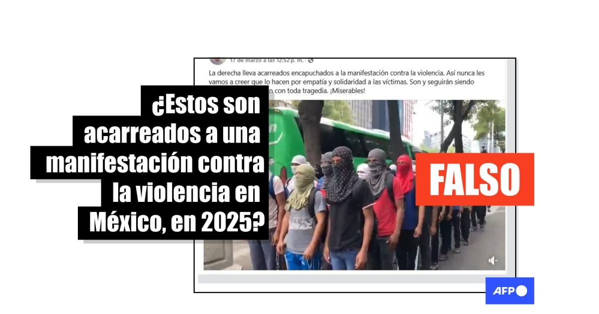 “La derecha lleva acarreados encapuchados a la manifestación contra la violencia. Así nunca les vamos a creer que lo hacen por empatía y solidaridad a las víctimas. Son y seguirán siendo carroñeros que lucran con toda tragedia. ¡Miserables!”, se lee en una publicación en X y Facebook, acompañada de un video que muestra a varios hombres con el rostro cubierto haciendo tres filas junto a un autobús.
