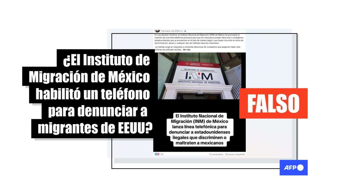 AFP Factual contactó a un representante del INM el 21 de marzo de 2025 y confirmó que se trataba de “información falsa” de la que ya estaban al tanto. Además, aseguró que no existe ni tiene intenciones de crear una línea telefónica destinada a denunciar ciudadanos estadounidenses que residan en México en situación irregular.