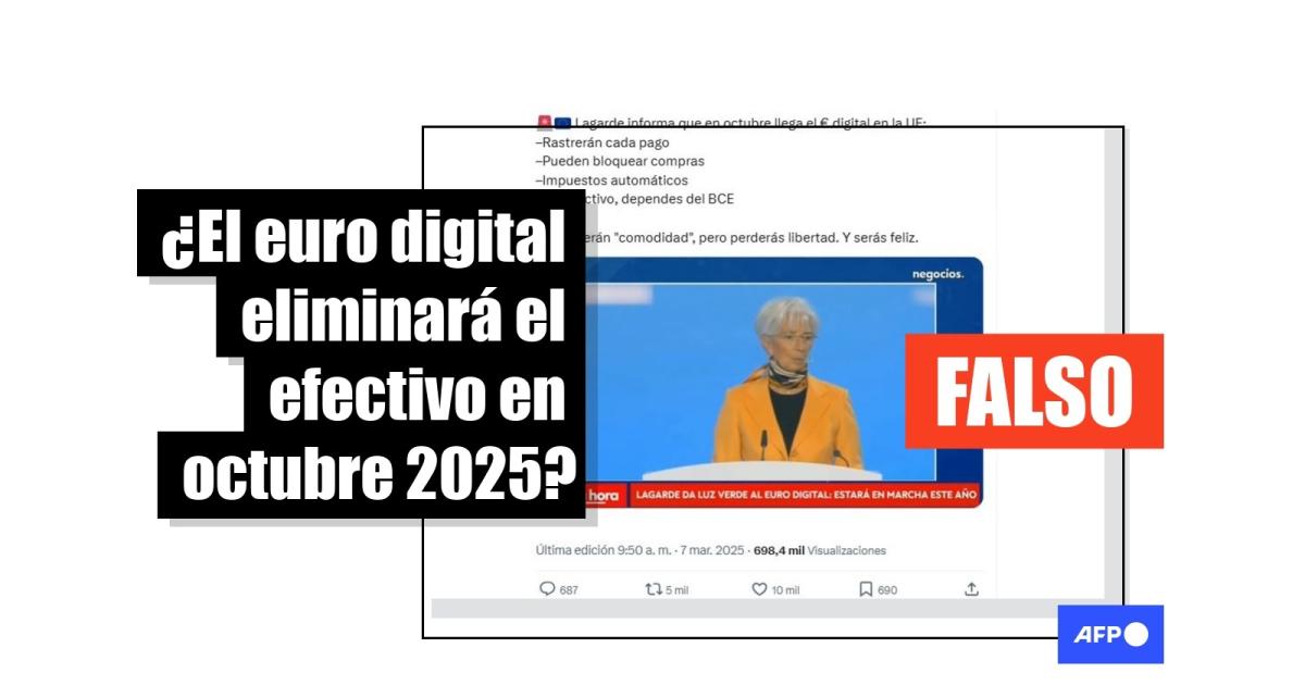 “Lagarde informa que en octubre llega el € digital en la UE: Rastrerán cada pago; Pueden bloquear compras; Impuestos automáticos; Sin efectivo, dependes del BCE. Te venderán ‘comodidad’, pero perderás libertad. Y serás feliz”, se lee en una publicación en X junto a un extracto de una conferencia de prensa de Christine Lagarde.