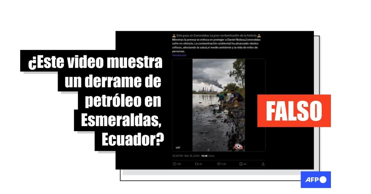 “#URGENTE l FUERTES IMÁGENES QUE REVELAN LA MAGNITUD DEL DERRAME PETROLERO EN ESMERALDAS: MILES DE FAMILIAS AFECTADAS”, dice una publicación que comparte el video en Facebook (1, 2).