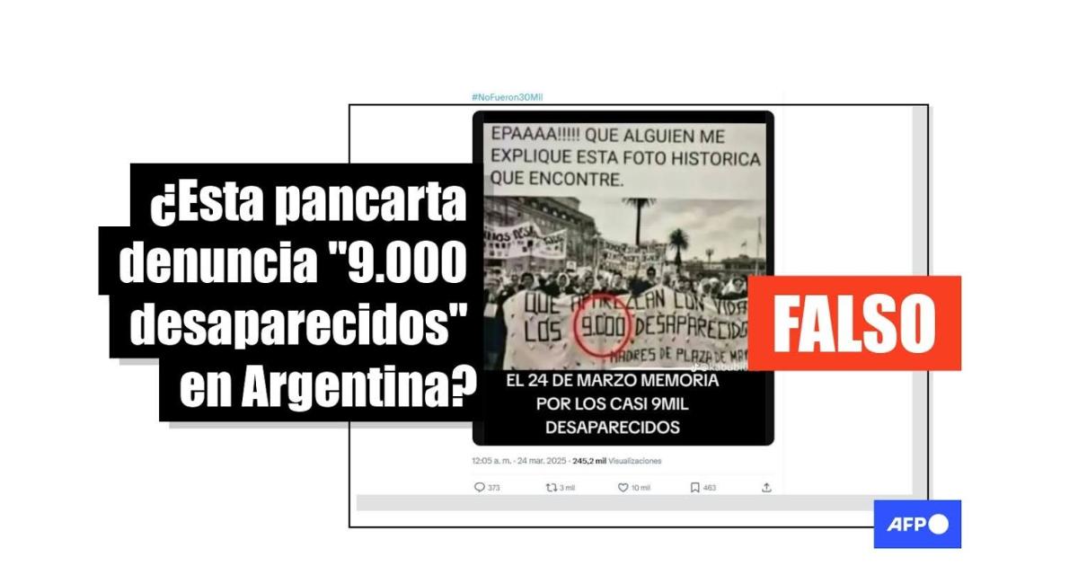 La foto de un cartel fue alterada para denunciar 9.000 desaparecidos argentinos en vez de 30.000