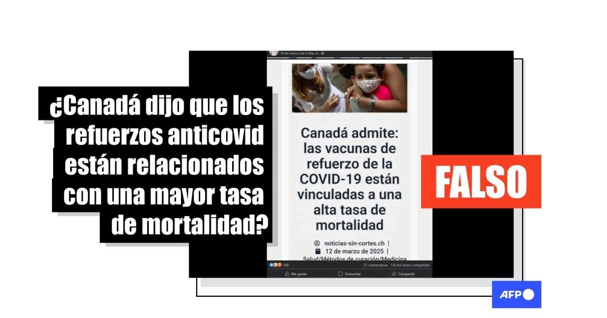 Las publicaciones compartidas en Facebook y X muestran una captura con el texto: “Canadá admite: las vacunas de refuerzo del covid-19 están vinculadas a una alta tasa de mortalidad”.