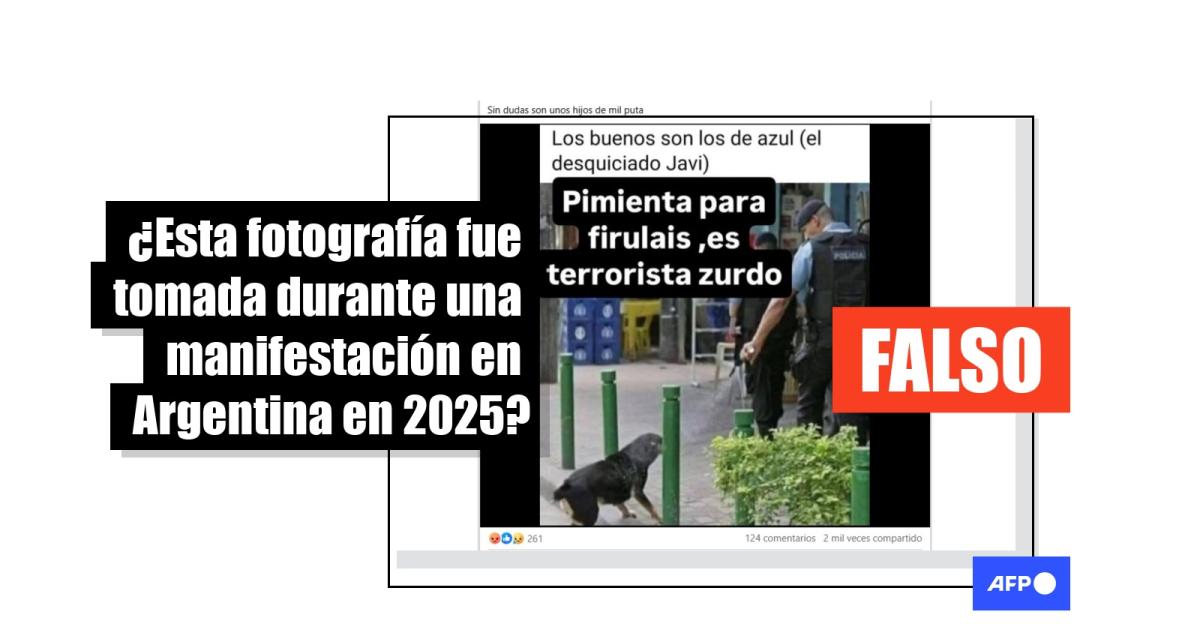 Una búsqueda inversa de la imagen viral en Google llevó a un artículo publicado en el portal G1, del grupo brasileño Globo, el 7 de mayo de 2012, bajo el titular, traducido del portugués: “La PM [Policía Militar] evalúa castigar al policía que usó gas pimienta contra una perra”.