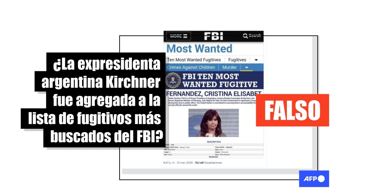 Es falso que Cristina Kirchner figura entre los diez fugitivos más buscados por el FBI en 2025
