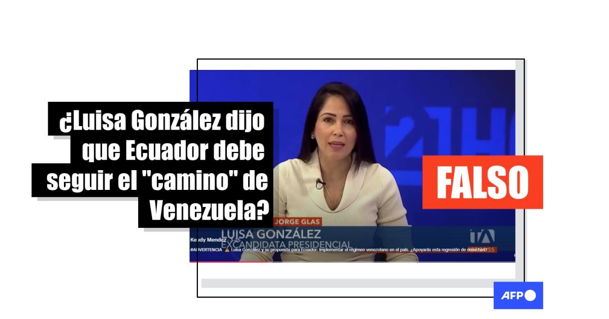 “Venezuela hoy es más segura que Ecuador y han sabido defender su soberanía a toda costa. Nosotros creemos que ése es el camino que debemos seguir, por eso en nuestro plan de gobierno está claro. Con Luisa González seremos Venezuela (...)”, dice el audio de un video de la candidata compartido en Facebook, TikTok y X.