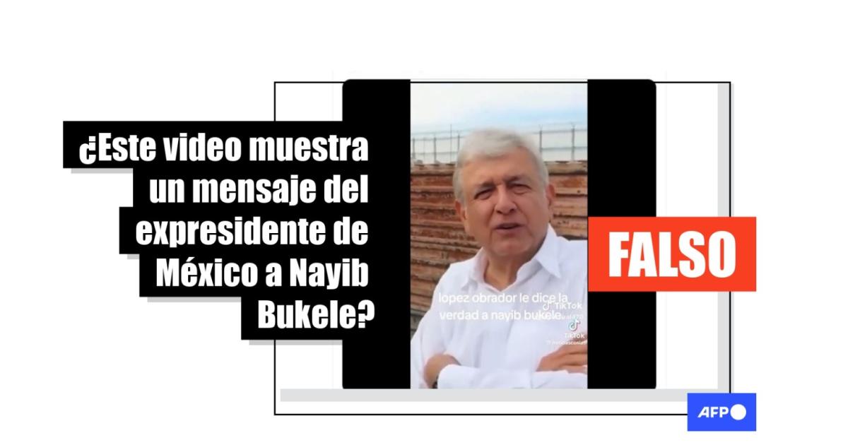 “El ex presidente mexicano, Manuel López Obtador, la envía un mensaje de lectura al porcino ladrón dictador Nayib Bukele”, dicen publicaciones en Facebook, X y TikTok.