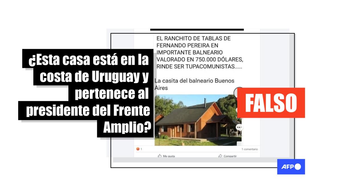 “El ranchito de tablas de Fernando Pereira en importante balneario valorado en 750.000 dólares, rinde ser tupacomunistas…La casita del balneario Buenos Aires”, se lee en una publicación compartida en X, junto a una fotografía de una cabaña. El contenido también ha sido difundido por usuarios en Facebook (1, 2).