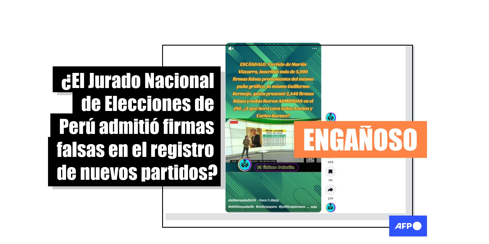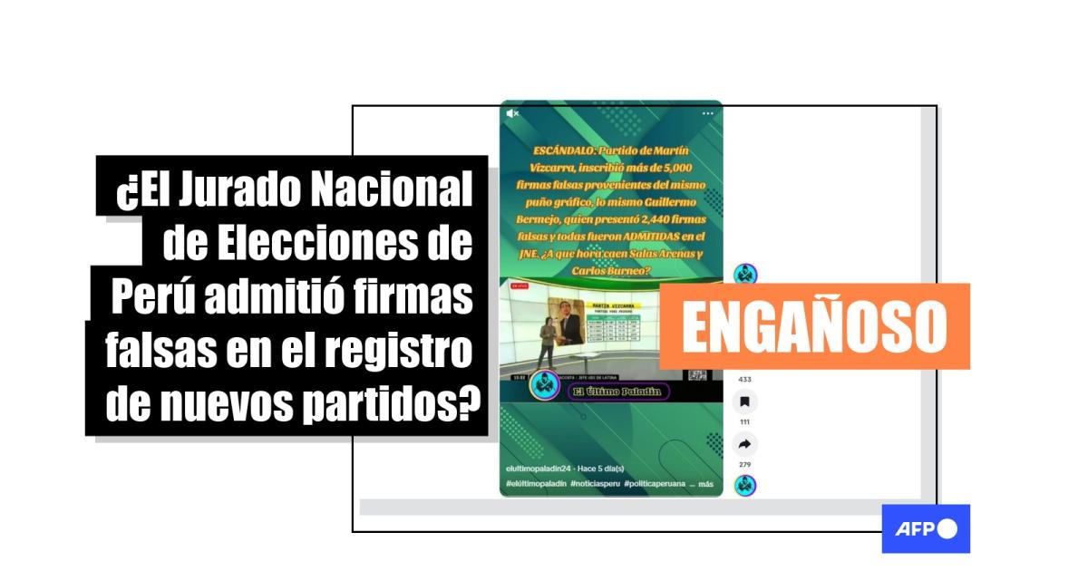 En abril de 2025, un noticiero en Perú dio a conocer que el Registro Nacional de Identidad y Estado Civil (Reniec) identificó que dos partidos políticos presentaron más de 7.000 firmas falsas para su inscripción. Desde entonces, usuarios han compartido más de 1.000 veces en redes sociales la afirmación de que el Jurado Nacional de Elecciones (JNE) admitió esas firmas. Pero es el Reniec el que verifica y valida las rúbricas para la inscripción de los partidos.