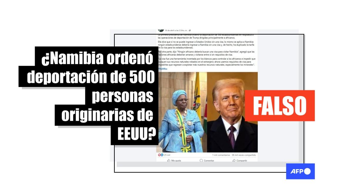 En un comunicado enviado a la AFP el 17 de abril, el gobierno reiteró la información: “La presidencia de Namibia calificó esto como una ‘noticia falsa’”.