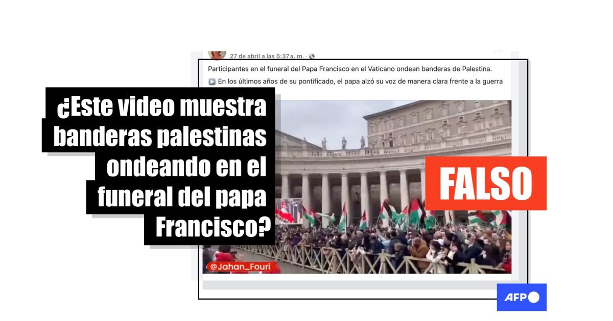 “Participantes en el funeral del Papa Francisco en el Vaticano ondean banderas de Palestina”, se lee una publicación en X, junto con una grabación que muestra una multitud cargando varias banderas palestinas en una reunión frente a la Basílica de San Pedro, el principal centro religioso de la Iglesia católica.