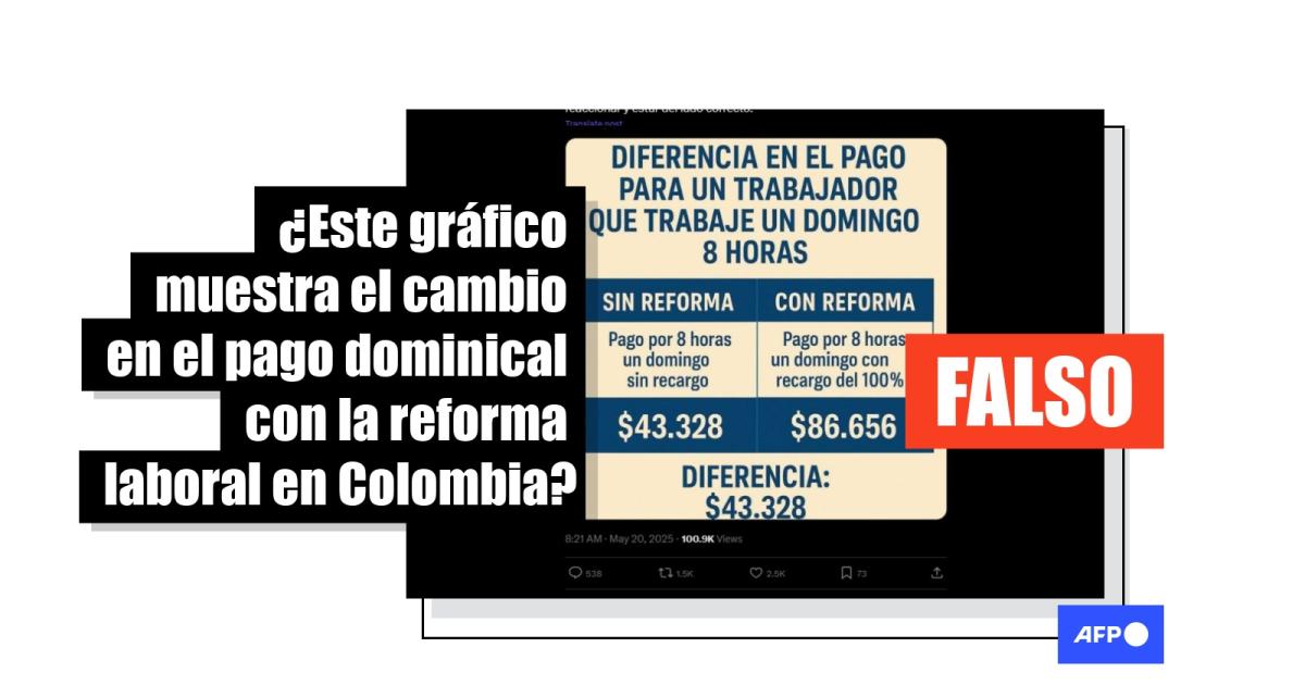 Javier Almanza Junco, abogado especialista en derecho laboral y docente de la Universidad del Rosario en Colombia, explicó a la AFP que “la imagen está dando una información equivocada porque está dando a entender que la persona se ganaría 43.328 [un domingo o festivo], lo cual no es cierto, ese es el valor de un día ordinario”.