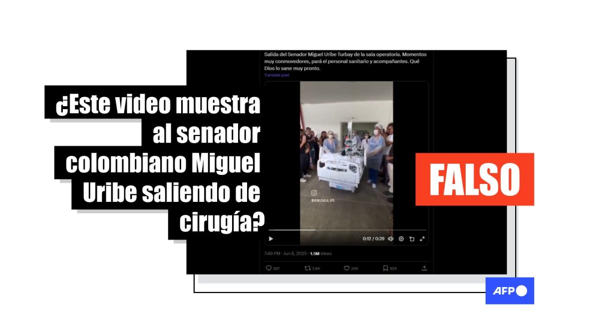 “Salida del Senador Miguel Uribe Turbay de la sala operatoria. Momentos muy conmovedores, pará el personal sanitario y acompañantes. Qué Dios lo sane muy pronto”, dice una de las publicaciones que comparten el video en Facebook (1, 2), TikTok (1, 2), X, YouTube y Threads.