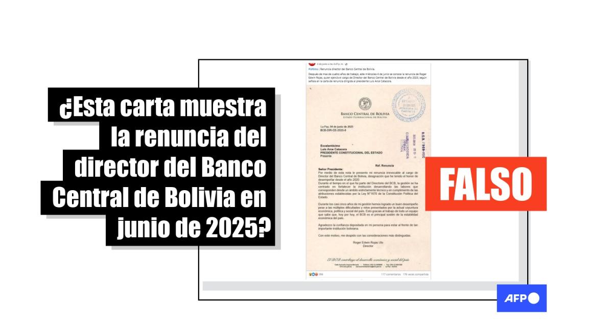Es falsa la supuesta carta de renuncia del presidente del Banco Central de Bolivia en junio de 2025