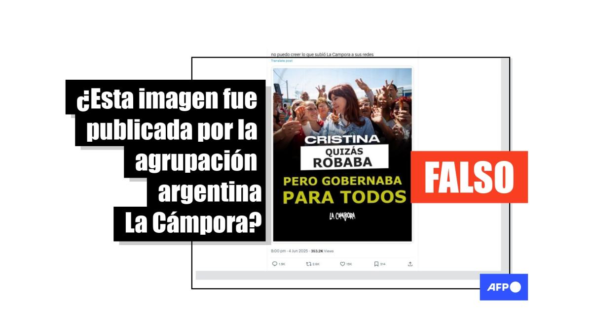 “No puedo creer lo que subió La Campora a sus redes”, agrega un usuario en X, en referencia la placa viral que también ha sido compartida en Facebook (1, 2) y que circula desde noviembre de 2024 (1, 2).