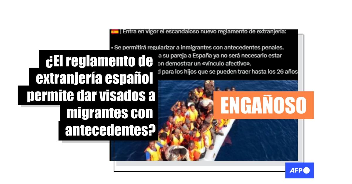 Una publicación de la cuenta “HerQles” –que ya compartió en otras ocasiones desinformación verificada por AFP Factual– en X alerta sobre el “escandaloso nuevo reglamento de extranjería”, según el cual “se permitirá regularizar a inmigrantes con antecedentes penales”. También afirma que “para que traigan a su pareja a España ya no será necesario estar casado: bastará con demostrar un «vínculo afectivo»” y “se amplía la edad para los hijos que se pueden traer hasta los 26 años”.