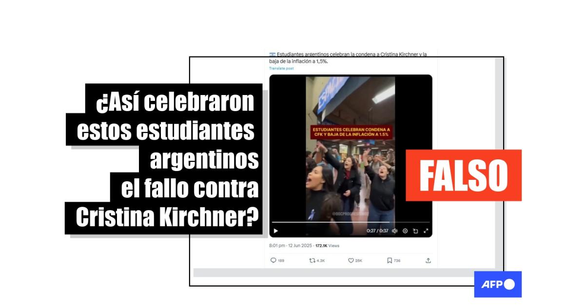Sin embargo, es falso que las grabaciones muestran a estudiantes celebrando la condena contra Kirchner y el último índice inflacionario.