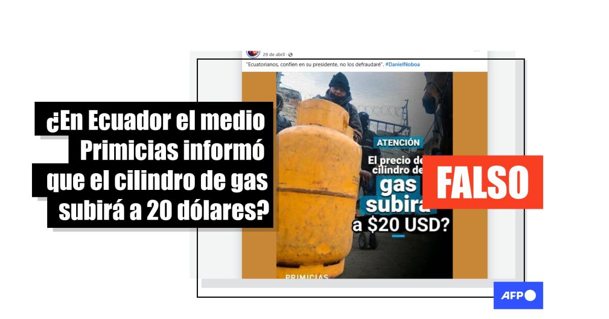 Pero ni el gobierno ecuatoriano informó una suba del precio del cilindro de gas a 20 dólares ni el diario Primicias lo informó.