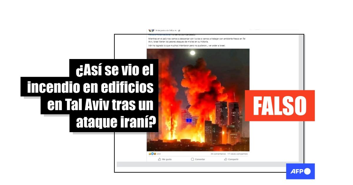 Al revisar el reporte de la BBC sobre el ataque iraní del 14 de junio, se encontraron imágenes de los mismos edificios que se ven en las publicaciones virales. En el video se explica que Tel Aviv fue alcanzada por un misil iraní, pero no provocó incendios.