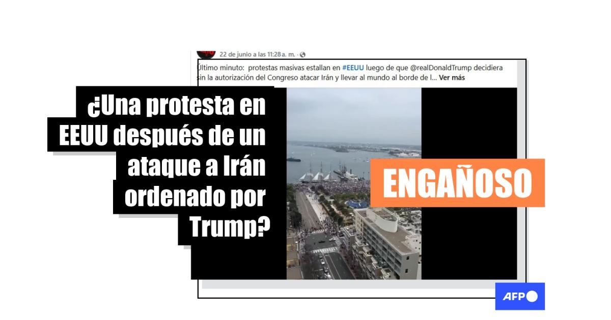 Una búsqueda en Google con la frase en inglés “protestas contra Trump por ataque a Irán” llevó a varios reportes de prensa (1, 2), que informan que el 22 de junio de 2025 surgieron pequeñas manifestaciones en varias localidades de Estados Unidos por esa orden del presidente. Entre esas ciudades está San Diego, donde las estaciones de noticias locales (1, 2) informaron que decenas de personas se congregaron para protestar contra los bombardeos.
