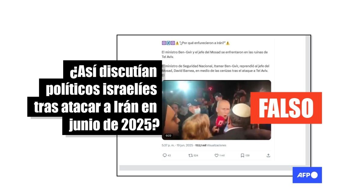 “El ministro Ben-Gvir y el jefe del Mossad se enfrentaron en las ruinas de Tel Aviv. El ministro de Seguridad Nacional, Itamar Ben-Gvir, reprendió al jefe del Mosad, David Barnea, en medio de las cenizas tras el ataque a Tel Aviv”, se lee en la descripción de un video compartido en Facebook y X.