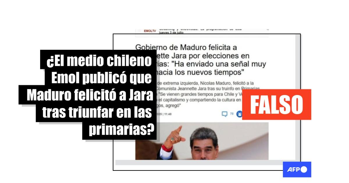 El medio chileno Emol no informó sobre una supuesta felicitación de Maduro a Jeannette Jara