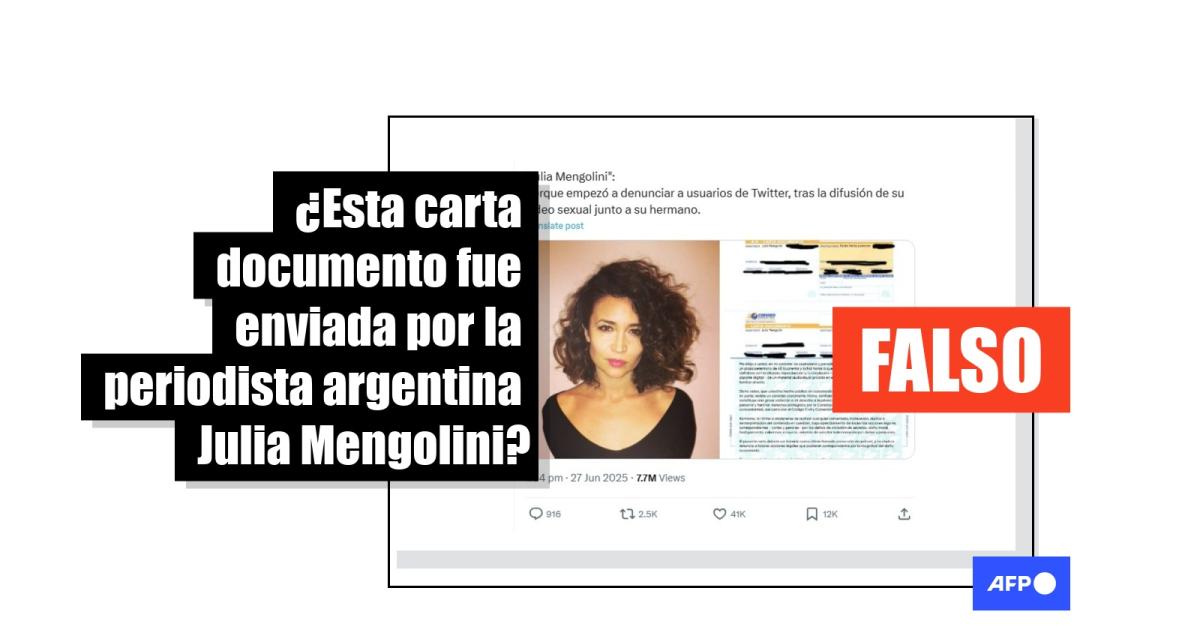 En junio de 2025, la periodista argentina Julia Mengolini denunció que en redes sociales la acusaban falsamente de mantener una relación incestuosa con su hermano, junto a un supuesto video que lo probaría. En ese contexto, más de 2.700 usuarios han compartido en redes sociales una presunta carta documento firmada por Mengolini, en la que denuncia a un usuario en X por la difusión de ese material sin su consentimiento. Pero la imagen es un montaje a partir de una plantilla que circula en internet al menos desde 2015.