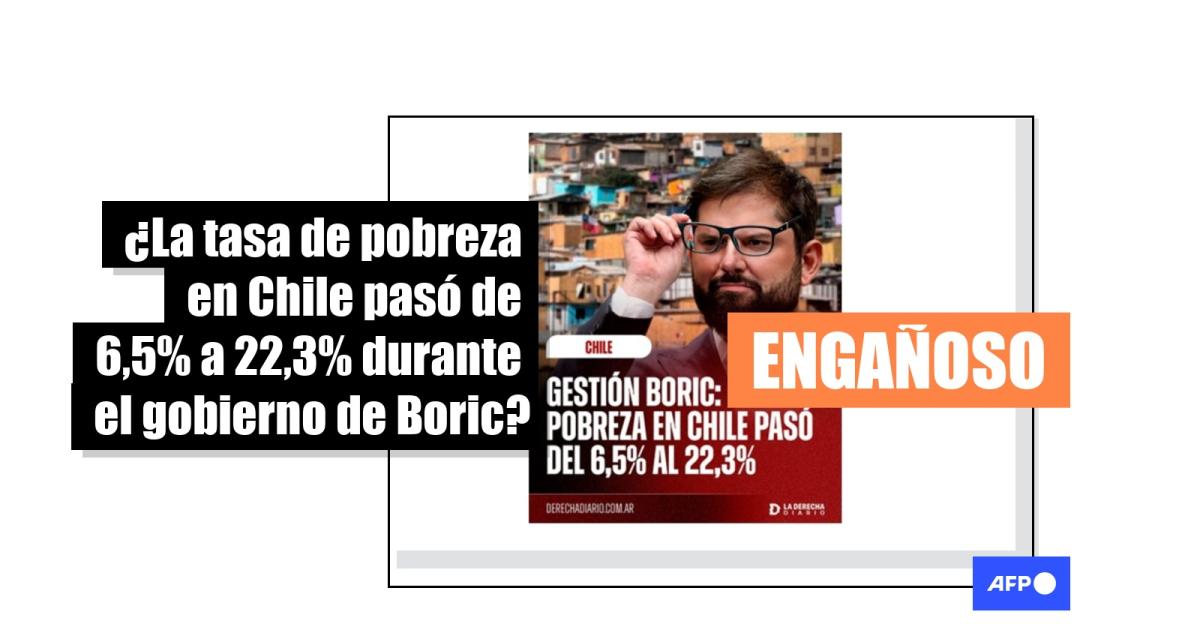 “LA IZQUIERDA PASA FACTURA: La pobreza en Chile pasó del 6,5% al 22,3% desde la asunción del comunista Gabriel Boric”, señala un usuario en X que comparte una placa con una foto del mandatario chileno.
