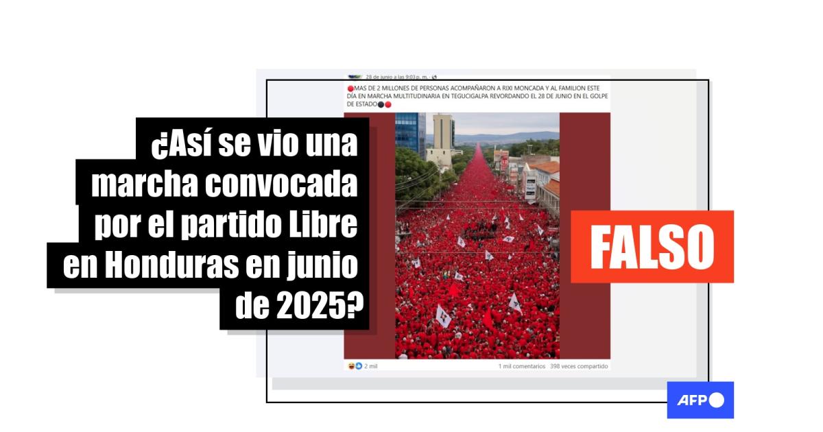 Una imagen atribuida a una marcha del partido Libre en Honduras fue creada con IA