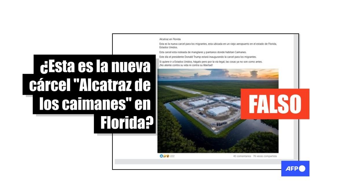 “Alcatraz en Florida . Esta es la nueva carcel para los migrantes, esta ubicada en un viejo aeropuerto en el estado de Florida, Estados Unidos. Esta carcel esta rodeada de manglares y pantanos donde habitan Caimanes”, señala un usuario en Facebook.