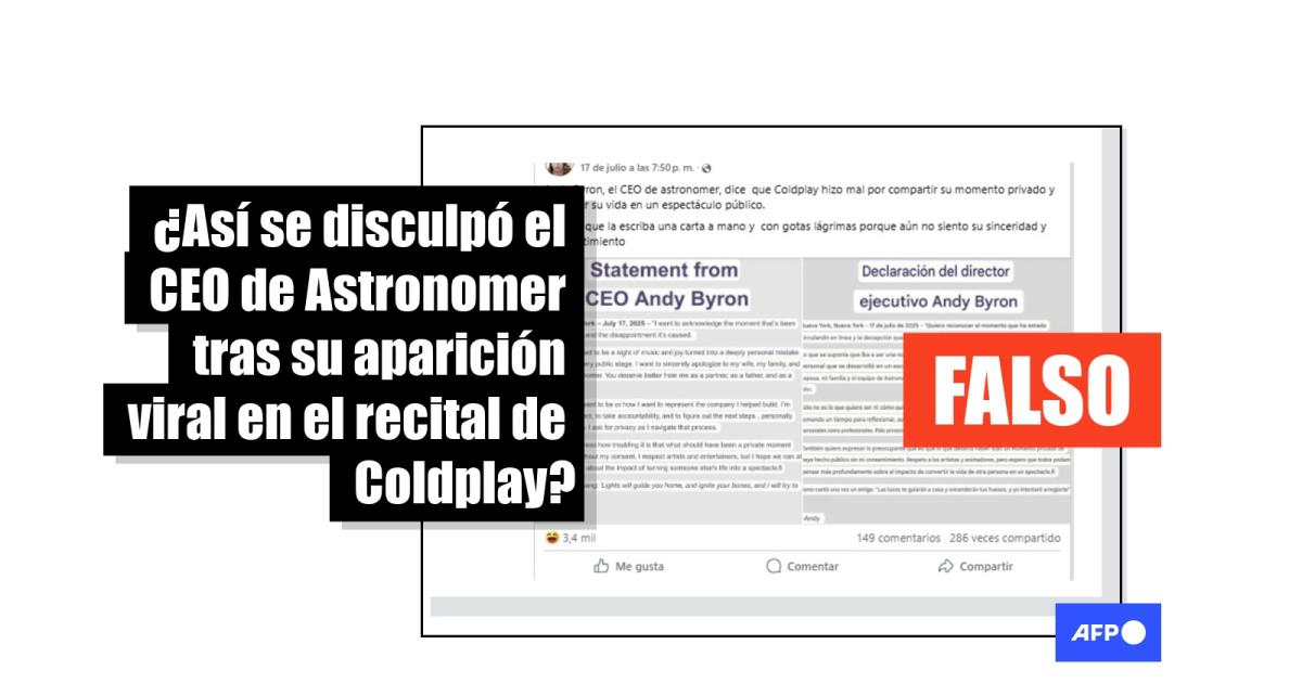 El vicepresidente senior de marketing de Astronomer, Mark Wheeler, confirmó a la AFP el 18 de julio que el contenido es falso y que este se habría publicado originalmente en una “cuenta parodia” en redes sociales.